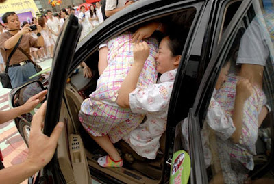 Only in Asia do competitions like this happen. The goal — in case you haven”t put it together — is to fit as many people as you can in one car. The doors must be closed for 10 seconds after everyone is in, the winner receives 500 Yuan (75 USD). Totally worth it.